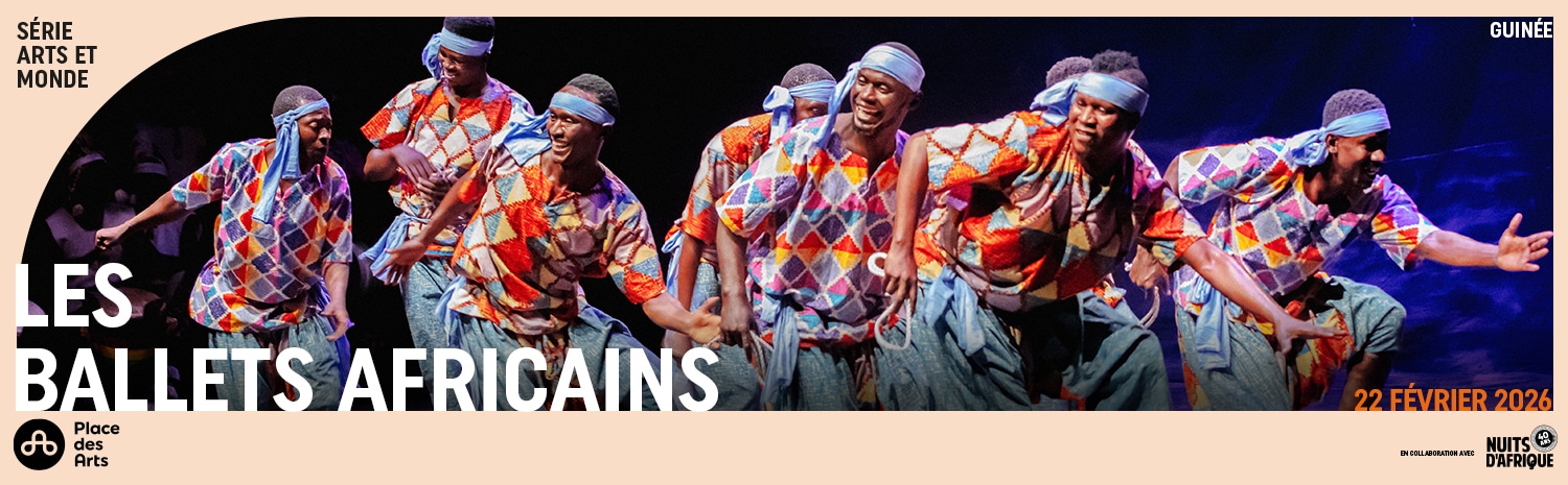 Les Productions Nuits d’Afrique sont fières de collaborer avec la Place des Arts à l’occasion du spectacle exceptionnel des Ballets Africains qui aura lieu au Théâtre Maisonneuve, le 22 février 2026 à 16 h, dans le cadre de la série Arts et monde. Cette troupe de renommée mondiale, dont a fait partie Lamine Touré, le président fondateur du Festival international Nuits d’Afrique, incarne pleinement l’esprit de l’événement, qui s’apprête à fêter son 40ème anniversaire.