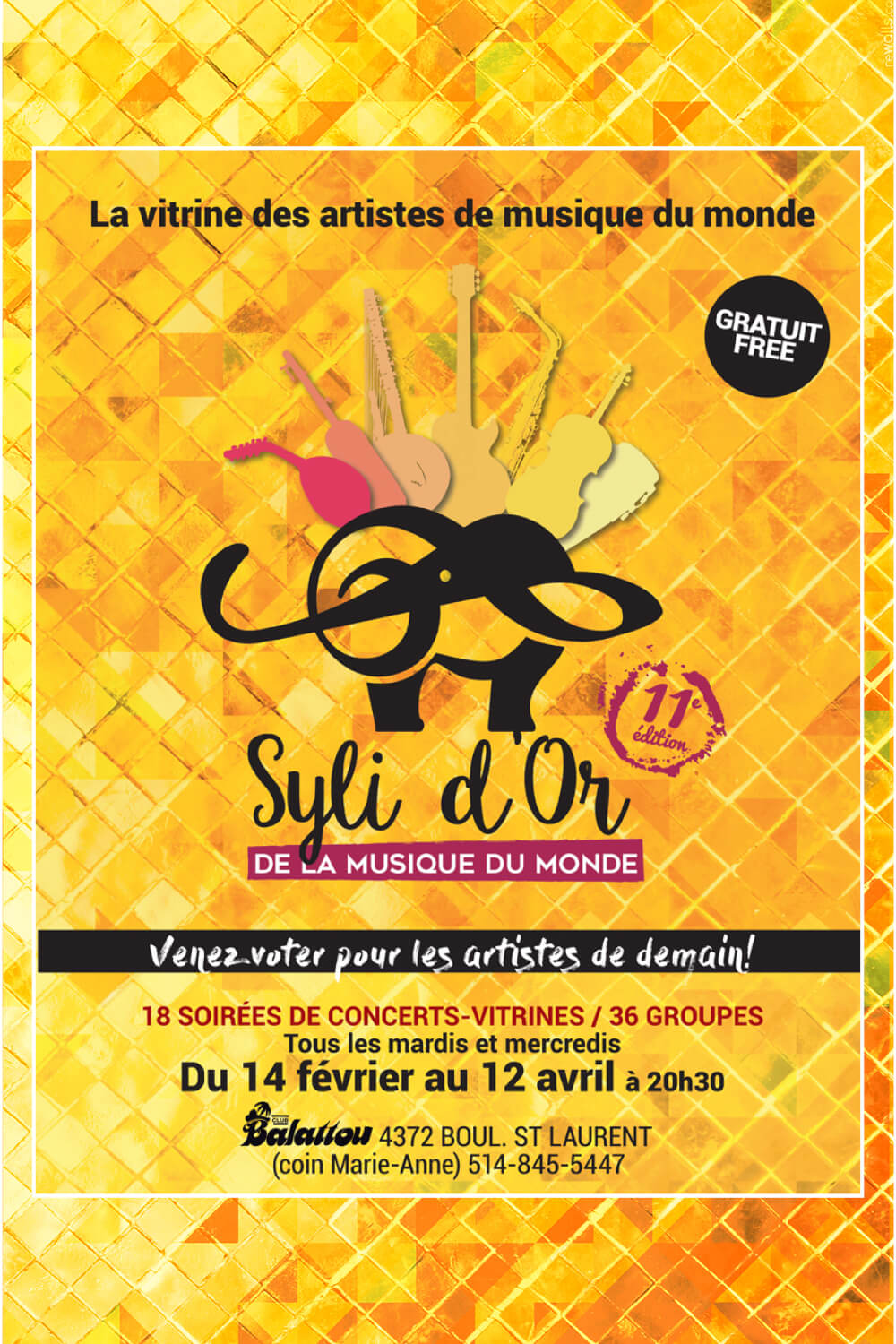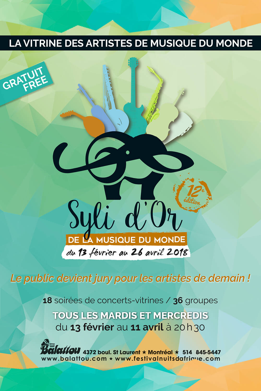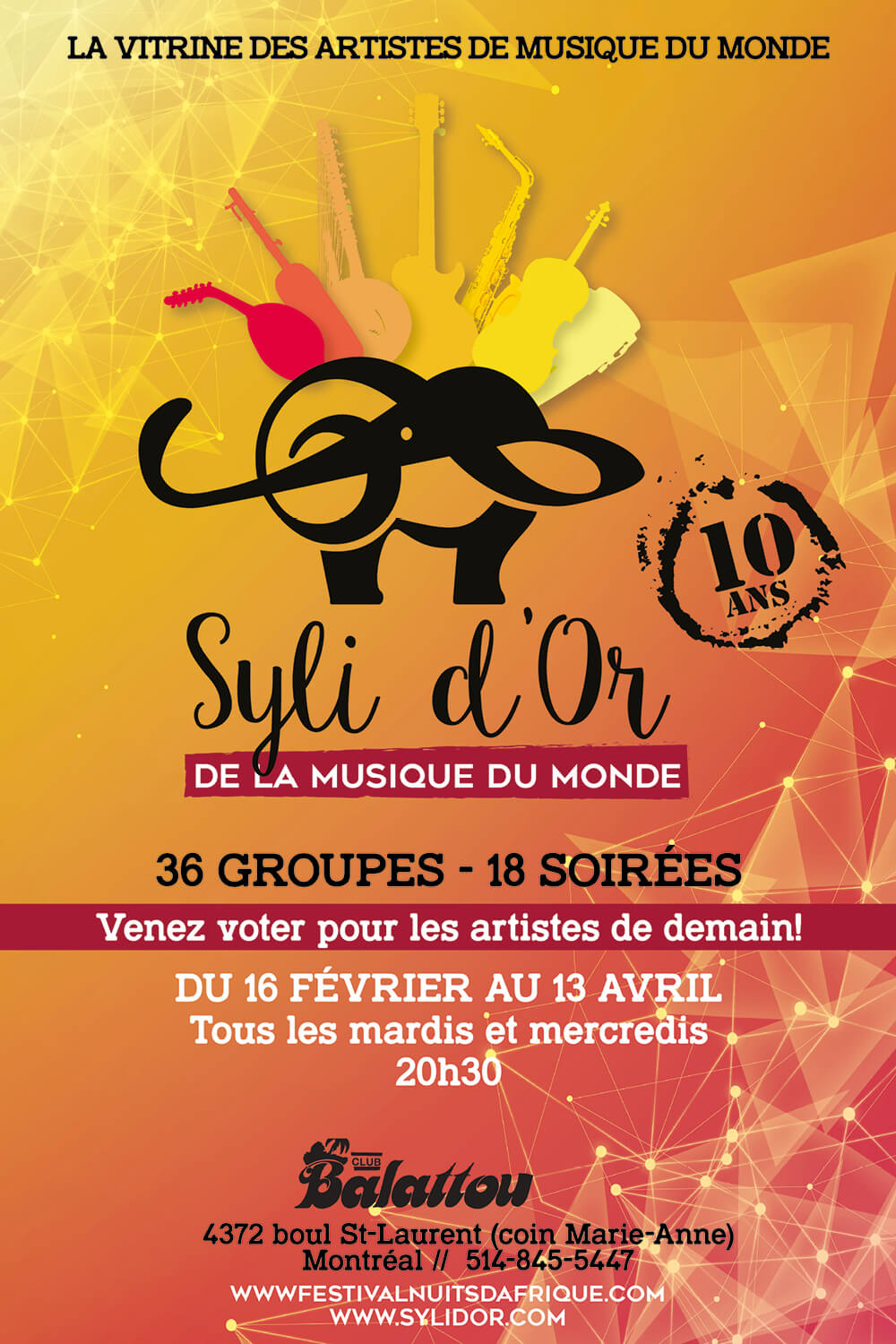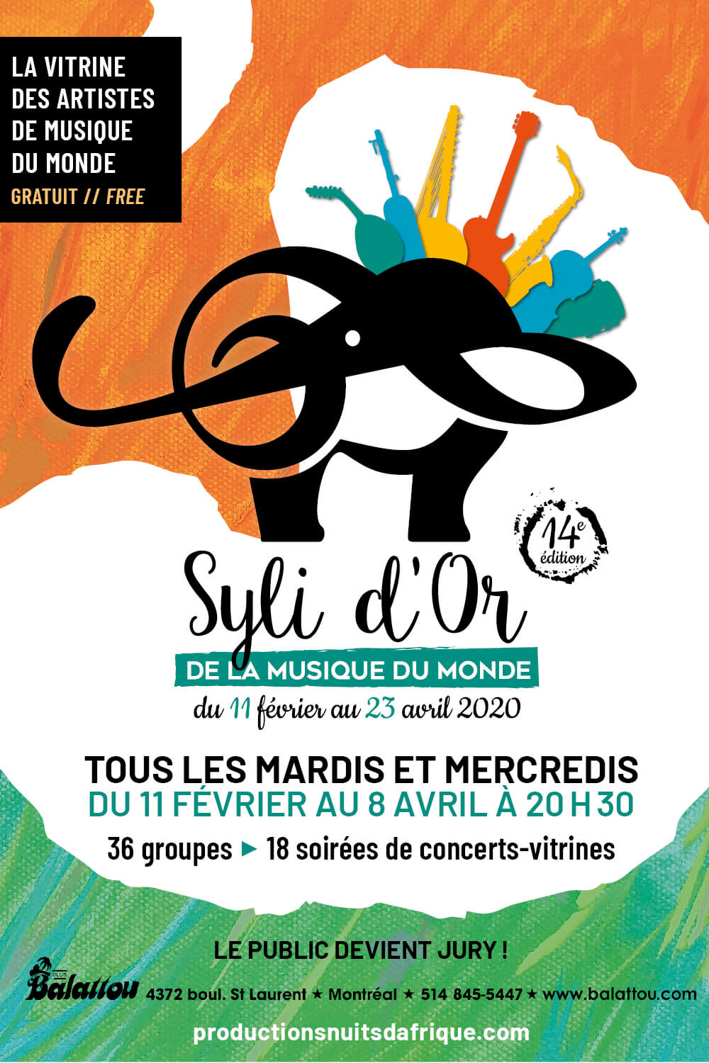 Les Syli d’Or de la musique du monde est une vitrine exceptionnelle pour les artistes du Canada, qui provoque chaque année la révélation de nouveaux talents, confirmant à tous les coups les dernières tendances des musiques du monde.